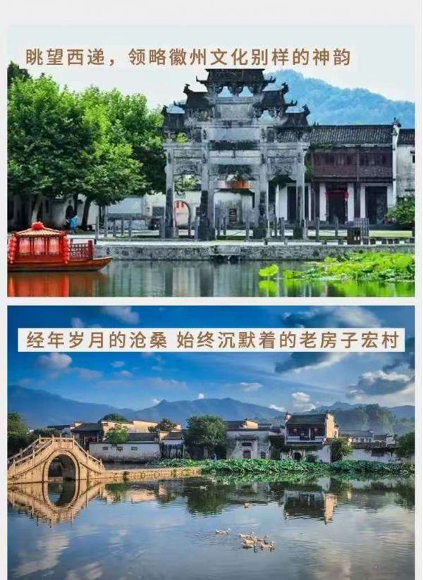 后游览【西递】景区,西递素有“桃花源里人家”之称,这里自古文风昌盛,到明清年间,一部分读书人弃儒从贾,他们经商成功,大兴土木,建房、修祠、铺路、架桥,将故里建设得非常舒适、气派、堂皇。西递村被联合国教课文组织列为遗产名录。