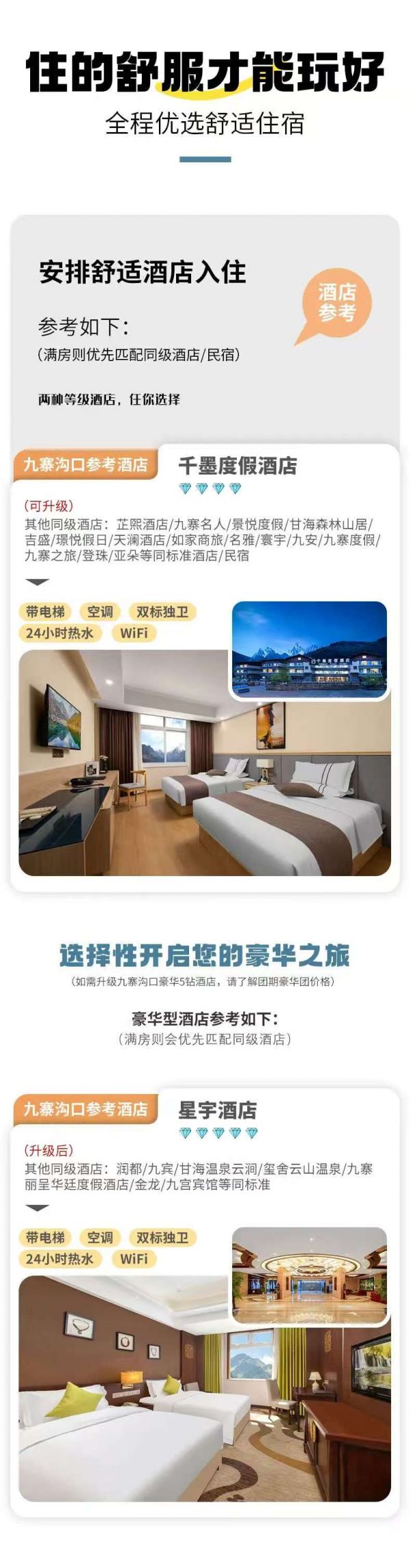 包含旅游意外险(不含财产险);包含仙境九寨旅拍(精修旅拍电子照3张+底片全送);