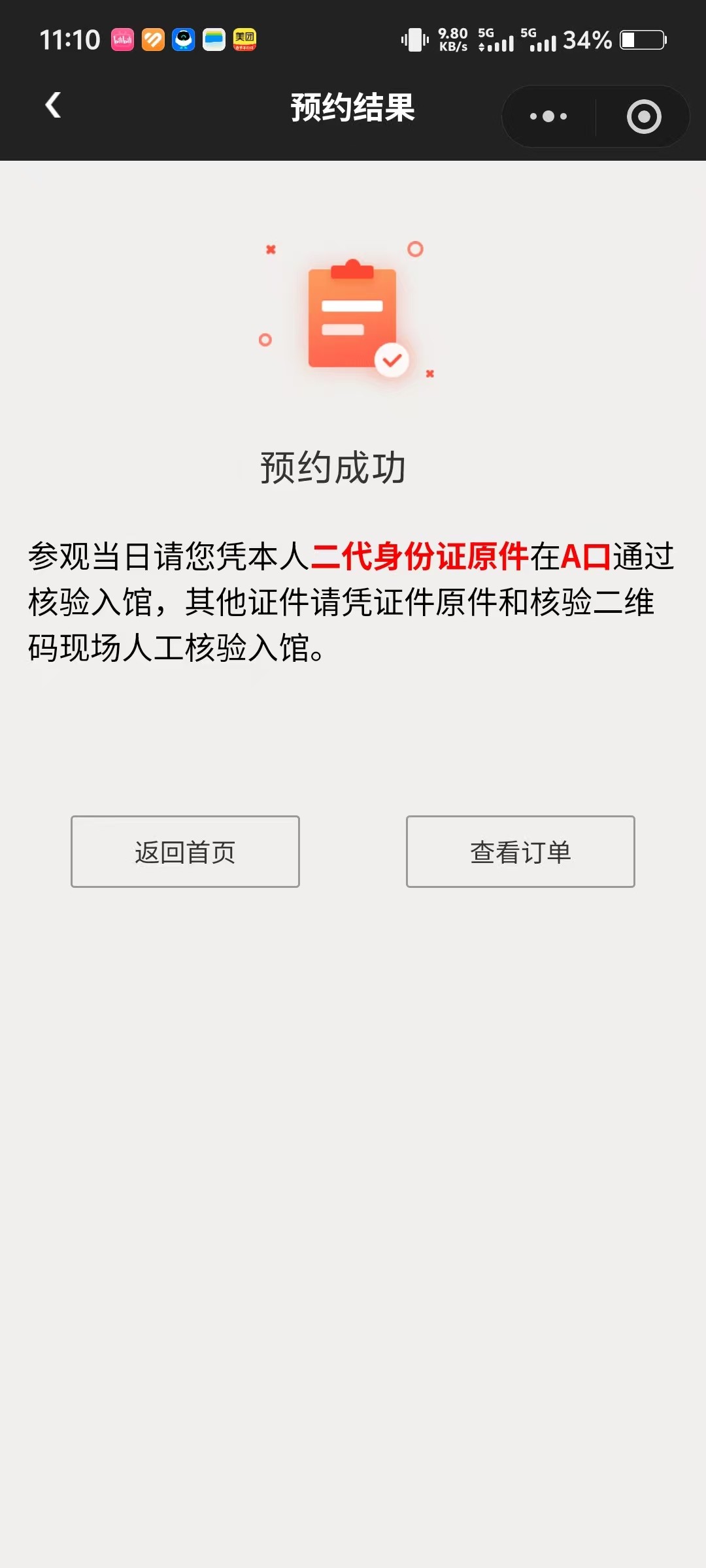 3. 使用二代身份证成功预约者,入馆参观时请持本人身份证原件,在闸机处通过“人证比对”进行门票核验;使用护照、港澳居民来往内地通行证、台湾居民来往大陆通行证、外国人永久居留身份证预约的观众,参观当日凭预约证件原件通过人工通道完成门票核验。