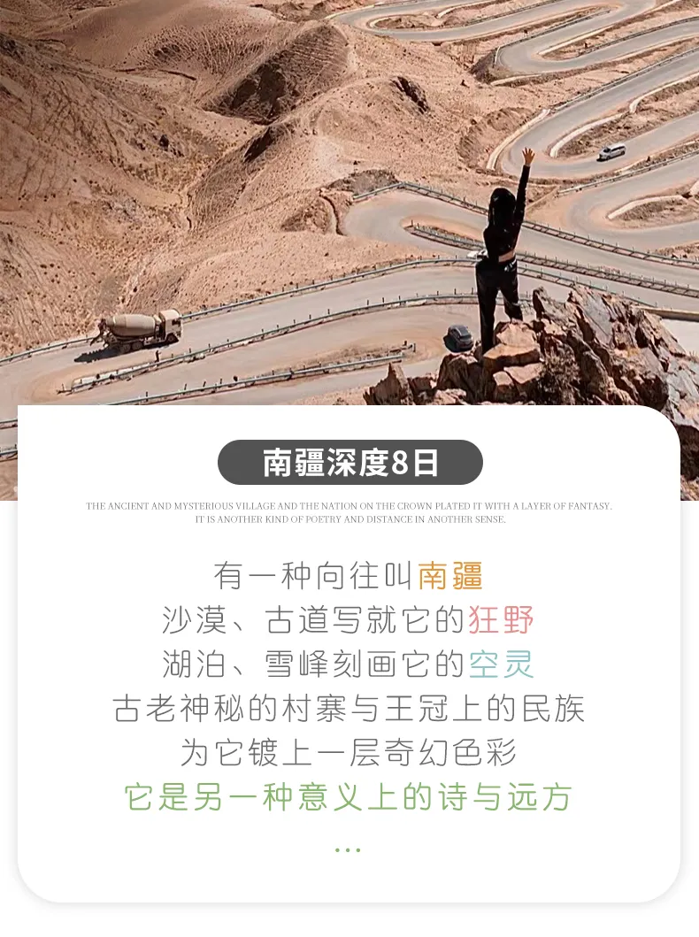 请对应使用我方玩聚南疆8日行程,因使用其它行程造成的投诉,责任自负;请仔细阅读以上行程文档,同意并保证遵守我方安排,以免为您带来不必要的麻烦;如产生合同纠纷或人身意外事故,按《中华人民共和国合同法》、《道路交通法》、《保险赔偿条例》裁定;本行程作为旅游合同附页与旅游合同同等法律效力。