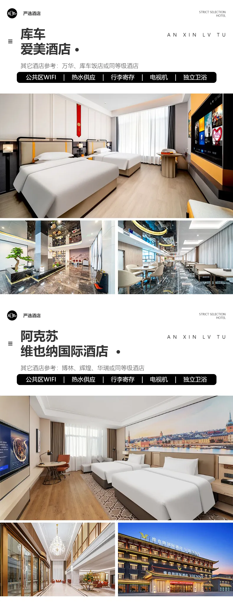 阿克苏:博林、辉煌、华瑞、维也纳国际酒店或同级酒店
