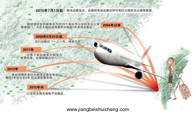 近11年来,大陆方面出台了一系列便利台胞来往大陆的政策措施,包括:2004年以来,陆续授权20个省市区公安机关出入境管理部门,为在大陆的台湾居民补换发5年有效台胞证;2011年,全面下调签注收费标准,总体降幅达50%;先后在42个城市设立43个台胞口岸签注点……免签注措施出台后,台胞来大陆将更加方便快捷,也将省去相关花费。