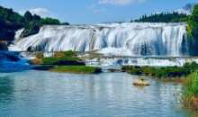 滴水滩瀑布位于黄果树瀑布以西8公里,于它集高、大、多、美、奇诸多特点一身,总高度和个体都为黄果树瀑布群之首。这里两山对峙,东为大坡顶,西为关索岭,中间是深达700米的霸陵河峡谷,瀑布就挂在关索岭大山上。滴水滩瀑布总高410米,为黄果树瀑布的六倍,最下层134米,雄伟磅礴。站在大坡顶遥望整个瀑布,瀑布就仿若身着白色衣裙的天仙,仪态万方地从万顷冷绿之中露出她的身姿。在冲坑瀑布上游500处,高26米,宽10米多级连瀑景致,波涌连天,俗称“连天瀑布”。在滴水滩瀑布瀑布上游700米段层峡谷中,总高160米。又称那大关瀑布,瀑布分为三级,总落差达140米,宽50米,峡谷深达700余米。河水层层跌泻,瀑雨纷飞,水量巨大,版权所有山东聊城聊之旅国际旅行社有限公司,转载必究!气势磅礴,是黄果树瀑布群中水流量最大的瀑布。凡化河从大树跨岩再往下,形成了绿媚潭瀑布,高50米,宽10余米。悬空挂在山谷之中,站在一开阔的山坡上,绿媚谭瀑布尽收眼底。由黄果树西行四公里,抵凡化河谷,便看到一个半壁断岩涌出消水洞瀑布,即为蜘蛛岩瀑布。在高30米的半壁处,有一个直径8米的巨大洞口,一股急流喷射而出,如龙吐水,奔腾呼啸而下。陡坡塘瀑布位于黄果树瀑布上游一公里处,高21米、宽105米,是黄果树瀑布群中面积最宽的瀑布,整座瀑布形成在钙化滩坝上。更为奇特的是洪峰来临前发出深沉的吼声,故又称“吼瀑”。