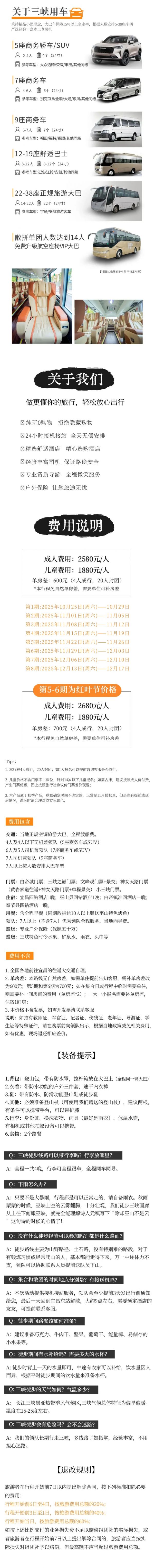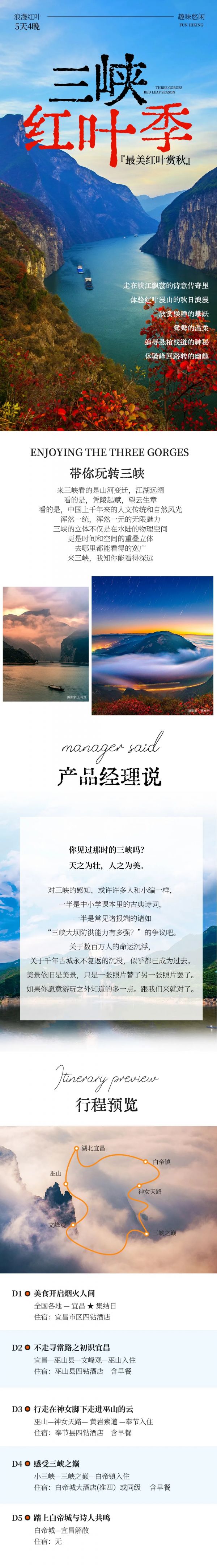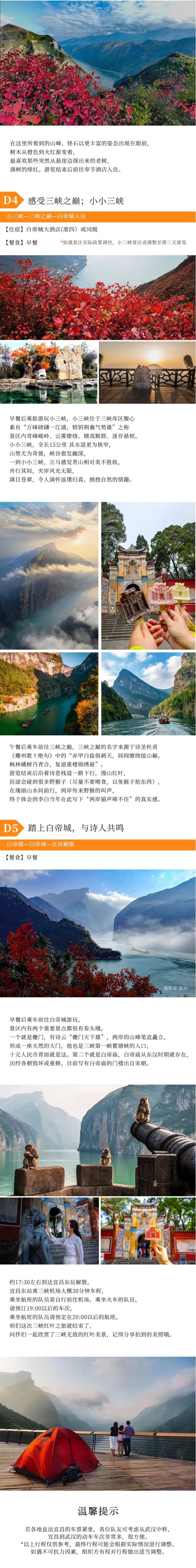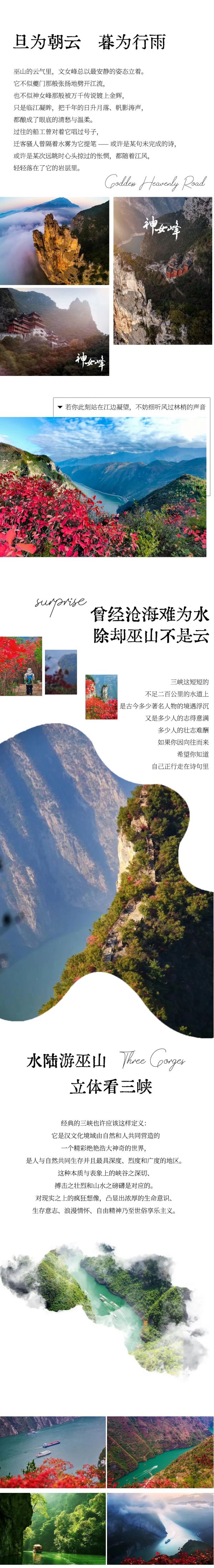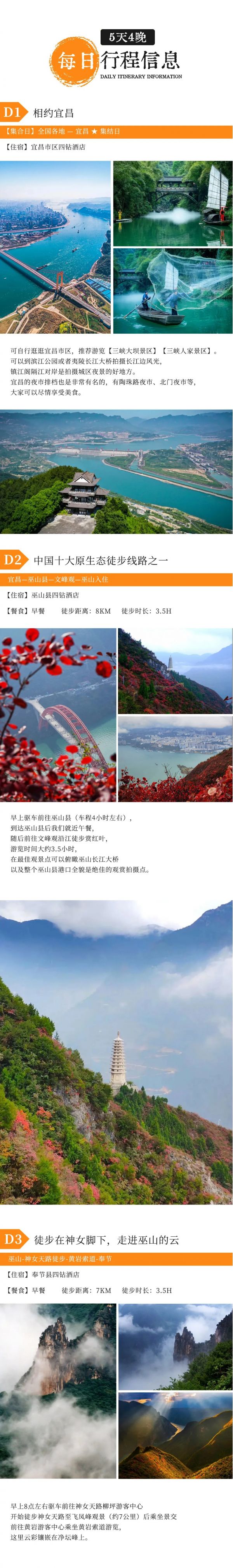 A:只要不是大暴雨,行程都是可以正常走的,请自备雨衣。秋雨蒙蒙的时候,巫峡上空的云雾翻腾,十分壮观,我们徒步三峡画廊从上往下俯瞰巫峡,就完全能理解诗人元稹写下“除却巫山不是云”这句诗的时候的心情了!