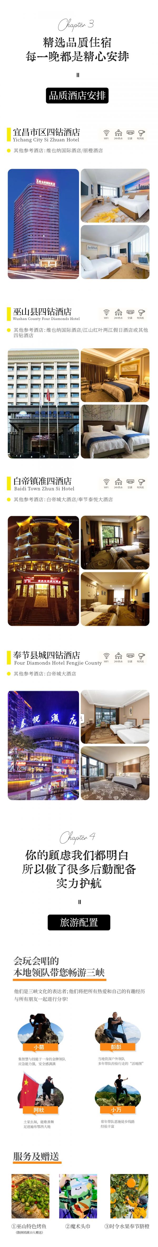 A:这次活动提供接机接站服务,领队会至少提前3天发送交通指引给您,最后一天会送站/机场服务,约15:00依次抵达火车站/三峡机场,建议预定17:00以后的火车票,18:00以后的机票。