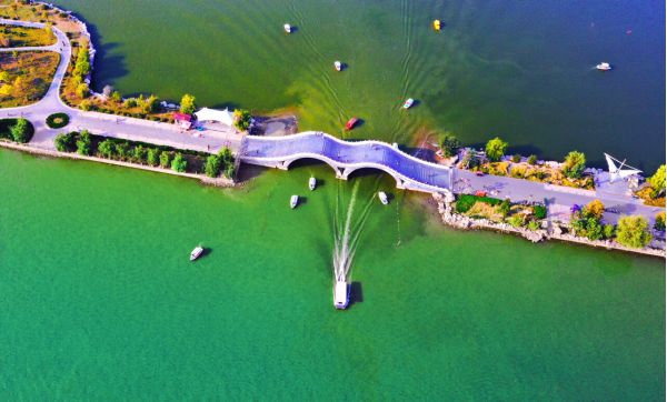 船游东昌湖约30分钟。东昌湖风景名胜区,系国家历史文化名城——聊城西南市区,东、北、西分别以聊城市区主干道柳园路、东昌路、湖西路为界,南至湖南路,总面积20.6平方公里。驰名中外的京杭大运河穿风景区而过。东昌湖风景名胜区以建于北宋时期的聊城古城为中心,以水面辽阔、风景秀丽、环绕于古城区四周的东昌湖为依托,集中体现了聊城“水、古、文”的特色,营造出聊城“城中有湖,湖中有城,城湖河一体”的独特风貌,是山东西部和冀、鲁、豫接壤地区最为著名的风景游览区。