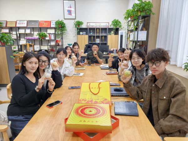3.近期及后续工作安排: 视频项目提交时间确认(吕凯雪牵头):大赛组长吕凯雪需主动联系竞赛主办方,确认视频项目提交是否推迟。 若提交推迟:优先组织成员熟悉电脑实操流程,确保操作熟练度; 若提交不推迟:先集中精力背诵笔试题目、完成视频录制,后续再补充电脑实操练习。 研学组理论题考核(9月27日):刘宝平老师将于9月27日上午9点,对研学组6名成员进行600道理论题考核,要求全体成员必须达到满分标准,需提前集中复习。 研学组视频脚本准备:研学组6人需在“八条线路”中任选一条,完成对应一分钟视频的文字脚本撰写,确保脚本内容贴合线路特色、逻辑清晰。 三、欢庆中秋 在如此紧张的备赛环境中,刘宝平老师带领全体备赛人员提前欢庆中秋!预祝大家在各项大赛中取得好成绩。