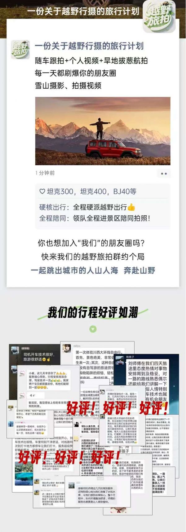2、如果您座我们的车:全程安排硬派越野车,车型不指定保证安排越野越野车出行,保证每人一正座;
