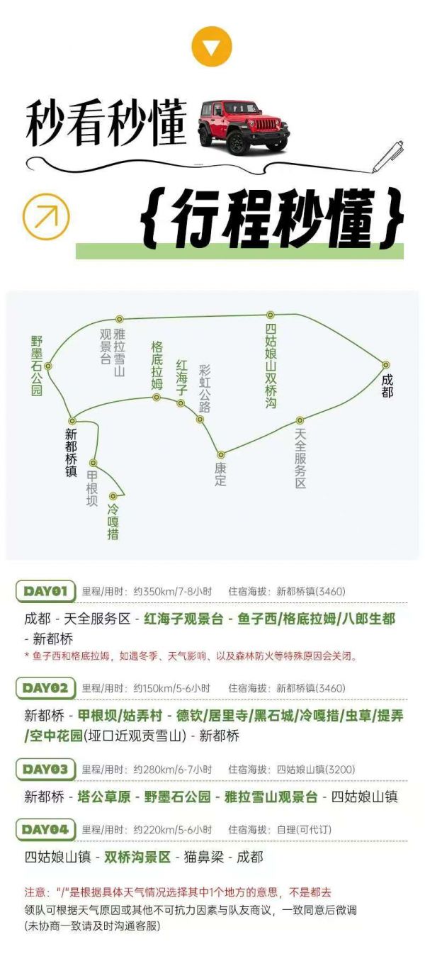 注:4人越野小团不会额外收取鱼子西/格底拉姆/八郎生都摆渡车费用。