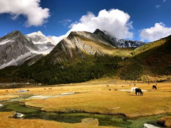 从新都桥出发,可选择前往甲根坝或姑弄村。早餐后从新都桥出发,前往甲根坝或姑弄村。甲根坝是一个充满浓郁藏式风情的地方,这里有广袤的草原、清澈的溪流和错落有致的藏式民居。您可以在这里欣赏到美丽的田园风光,感受藏族人民的生活方式和文化传统。姑弄村则是一个宁静的小村庄,抬头可见亚拉雪山巍峨耸立,周围的自然风光十分优美。您可以在村里漫步,与当地居民交流,了解他们的生活习俗。