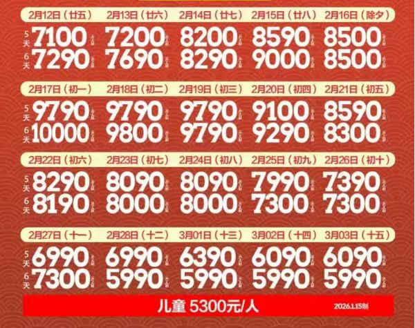 儿童5300元/人