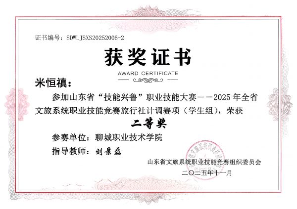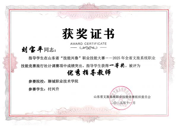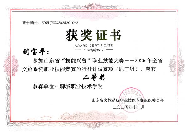 近日,2025年山东省“技能兴鲁”职业技能大赛——全省文旅系统职业技能竞赛旅行社计调赛项圆满落幕,文旅学院刘宝平师生工作室成员凭借扎实的专业功底和出色的赛场表现,在激烈角逐中脱颖而出,一举拿下包括学生奖项、职工奖项、优秀指导教师奖、优秀组织奖在内的六项重量级荣誉。