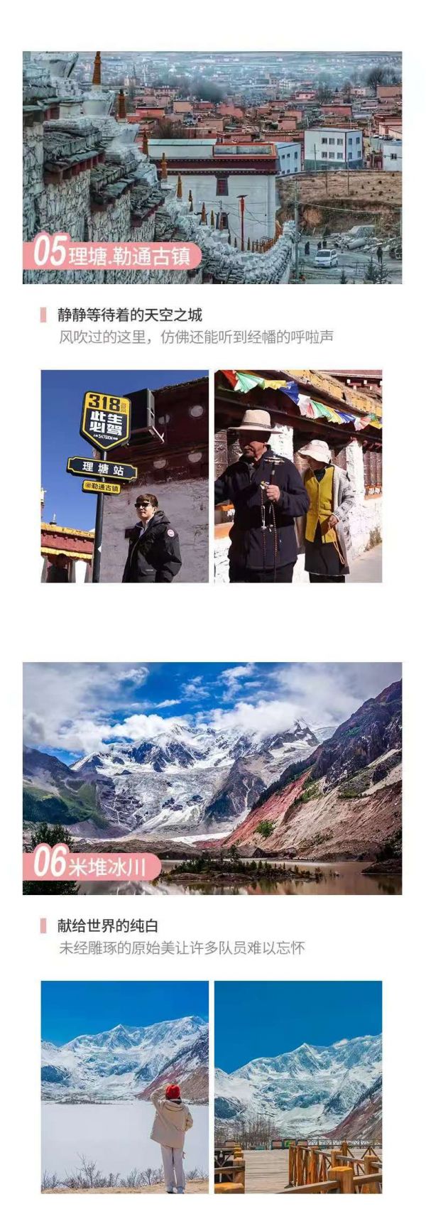包含四姑娘山双桥沟门票、理塘套票、甲居藏寨门票、米堆冰川门票、雅鲁藏布大峡谷门票、墨石公园门票、嘎拉桃花村门票、布达拉宫门票(如持有优惠证件者,请在报名的时候告知,我们会在行程结束后退还相应差价)