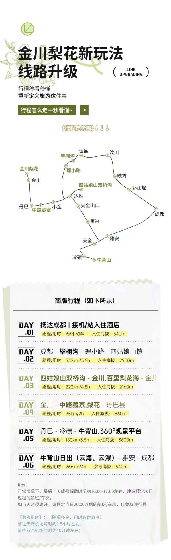 (3)此日行程较长,可能会稍感枯燥,下午的金川才是我们今日的行程重点,所以沿途停车较少,敬请见谅。