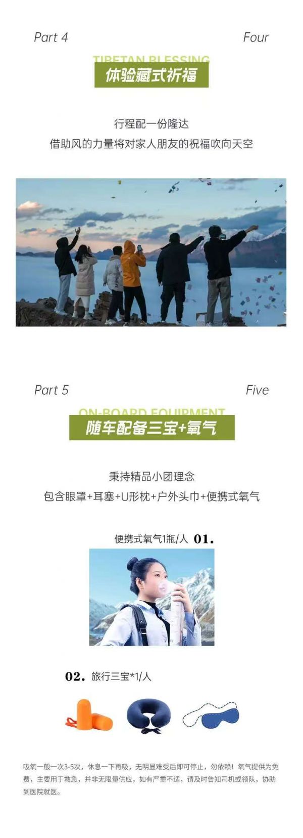 (1)到当地游玩希望您尊重原著文化、当地风俗以及他们的宗教信仰。接触另类生活人群和他们的文化时,尊重当地的文化和传统,与人平等相处才能发现一个完全不同的世界,减少旅游给当地文化和传统带来的影响,在藏地摄影时,请尊重当地的管理规定和民风民俗,对于关卡,桥梁,军事管理区,私人住宅,寺庙,法事,以及其它各种有拍摄禁忌的地方,请不要拍照,如果强行拍照,可能会造成相机被没收或者更严重的后果,由此造成的不良后果和影响,队员自负。