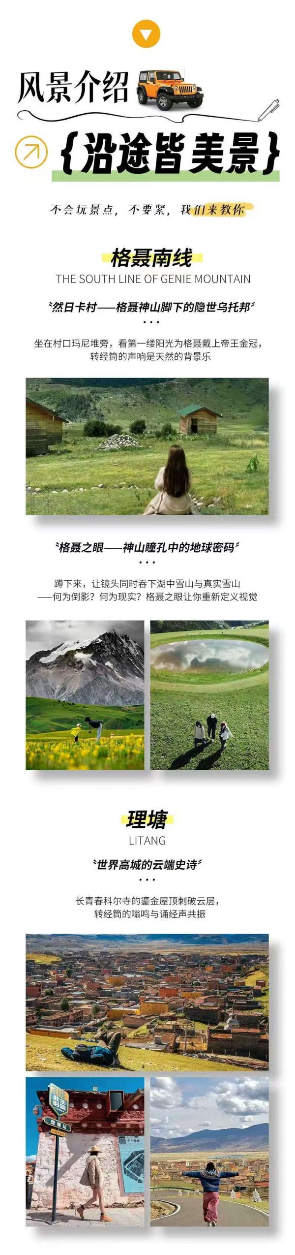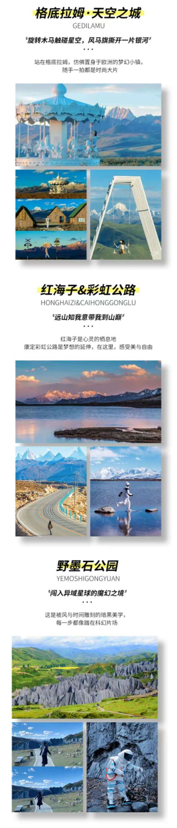 景点海拔:天全服务区(680)、红海子观景台(4100)、格底拉姆(4200)
