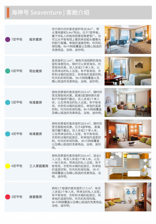 √邮轮设备设施和服务及极地目的地的介绍来源于参考材料,如果与实际有出入那么不视作旅行社违规。