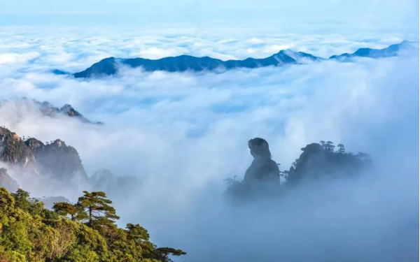 三清山有“小黄山”之称,是著名的道教名山。这里的景色也有几分仙气,能看漂亮的云海,欣赏山间惟妙惟肖的奇石,还能走上高空栈道赏景。