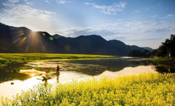 午餐后到达庆源,庆源村素有小桃园之称,长期与世隔绝,民风淳厚、景色直人,空气清新不染纤尘,泉水清澈赋含灵气。油菜花、梨花和桃花同时監开,把庆源人家笼罩在一派“金山、银海、胭脂云"的最象之中。