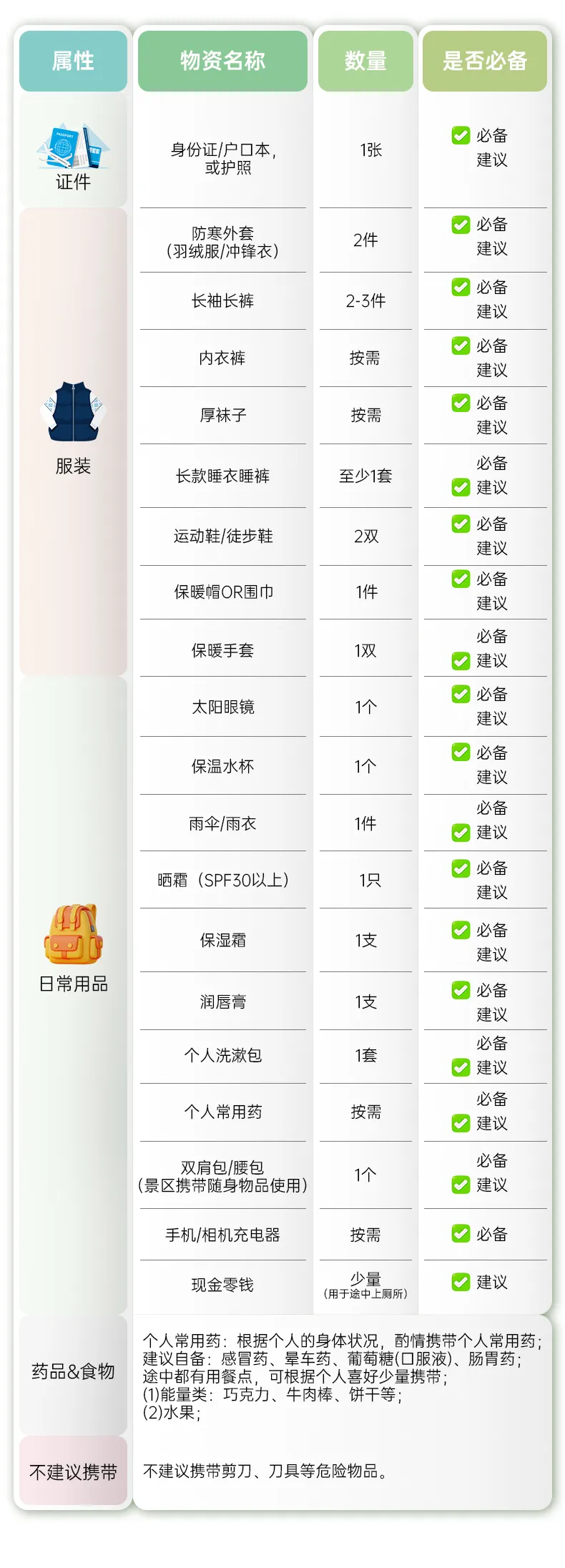 (5)长途:景点分散,距离较长。故乘车时间长易疲劳,带一些零食、饮用水、扑克牌等,途中消遣;