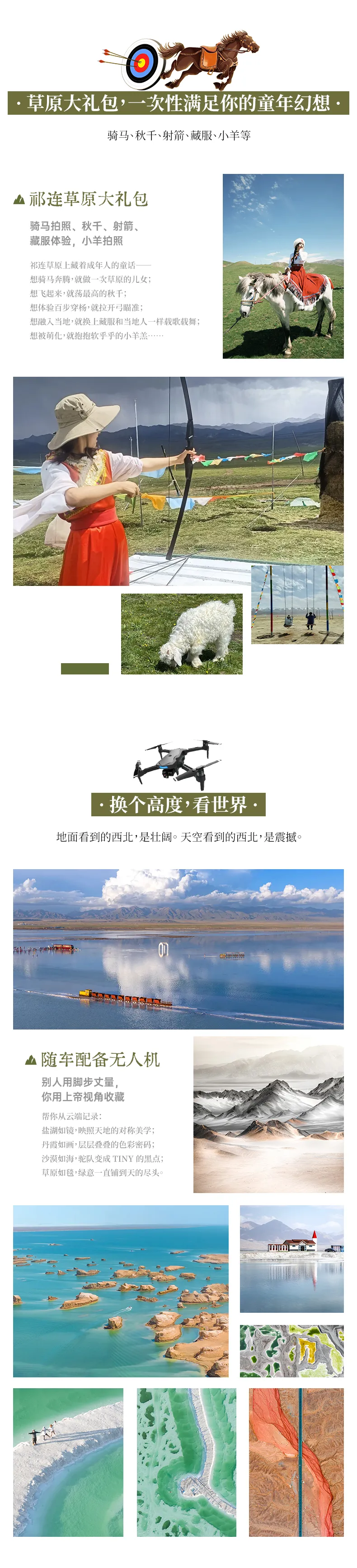 2、赠送祁连草原特色体验(骑马拍照、秋千、射箭、藏服体验,小羊拍照);
