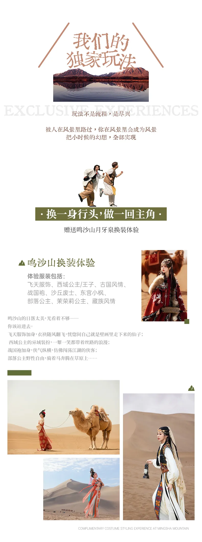 敦煌换装体验:(飞天、西域公主/王子、古国风情、战国袍、沙丘废土、东宫小枫、部落公主、茉莉公主、藏族风情);