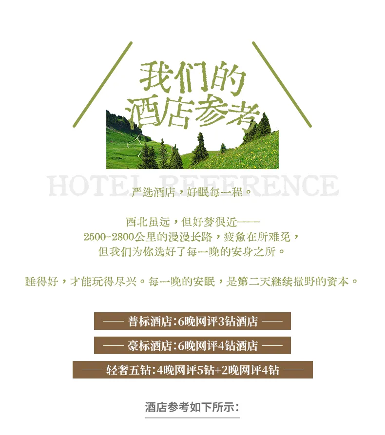 (6)对于住宿有特殊要求的队员,请在报名时告知客服(要求全程一个人住宿,大床房,三人间等等),在报名时确定费用,上团后临时修改住宿,可能无法满足其要求;