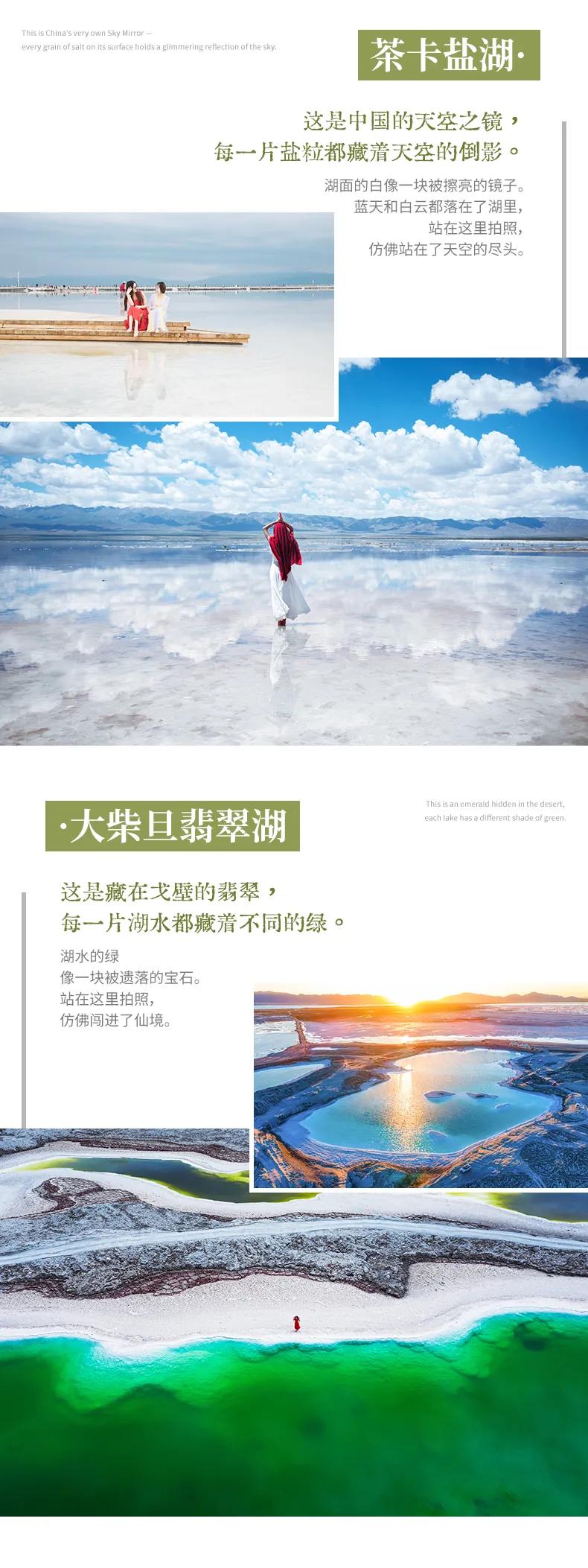 包含茶卡盐湖门票、鸣沙山月牙泉门票、大柴旦翡翠湖门票、张掖七彩丹霞门票