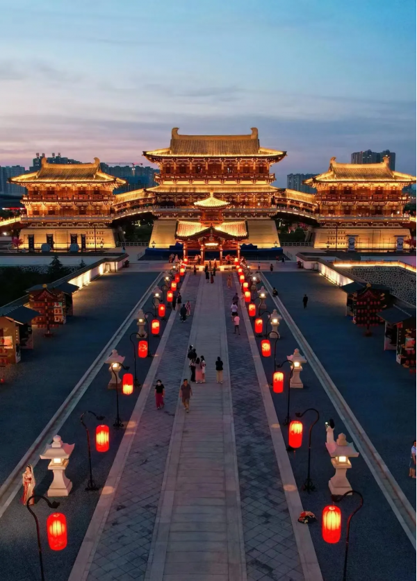 6、洛邑古城:古城灯火璀璨,仿佛穿越回了那个繁荣昌盛的大唐盛世,沉浸式感受“梦里隋唐,尽在洛邑”;
